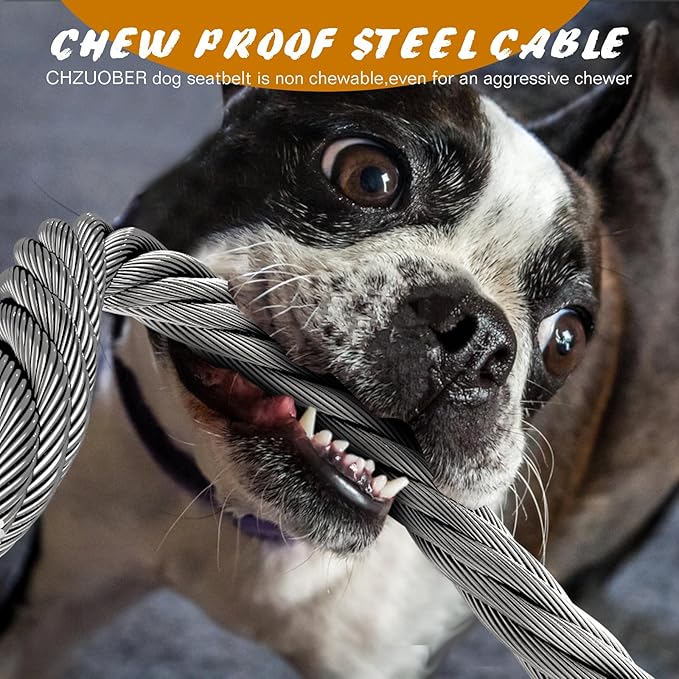 • CHEW PROOF & 2-In-1 DESIGN --- CHZUOBER Seat belt for dogs is designed with headrest restraint and car seat belt clip. This new version dog seat belts is made of steel cable which is extremely durable.Different with the fabric belt, the steel braided cord dog car leash is non chewable ,even for an aggressive chewer.
