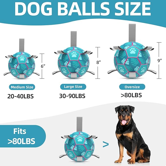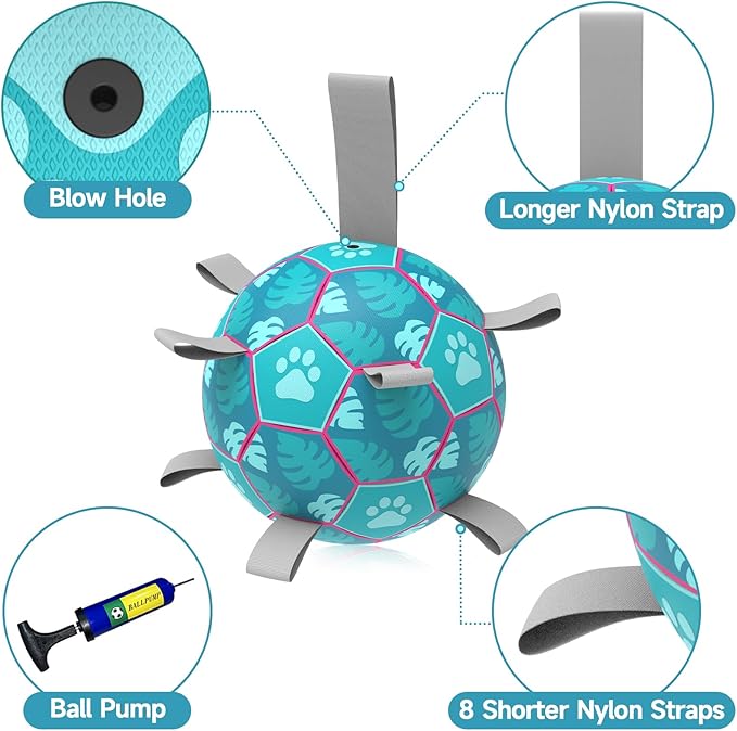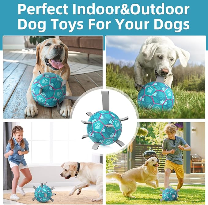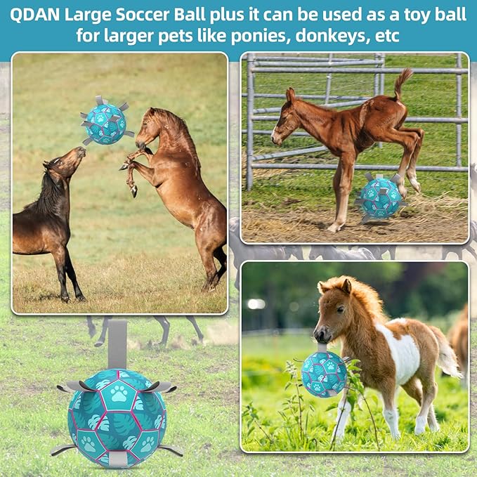 • ⚽ ⚽ QDAN Dog Soccer Ball Best Gift For Your Dog - Send your dog a birthday gift.House and Outdoor Dog Toys can be played in the living room,pool,lake and beach,because it is also Water Toys Ball,no water absorption,no seepage,no deformation,lightweight,easy to float in water.Dog Soccer Ball with Grab straps are great for dog catching balls and increasing your dog's interest in playing.