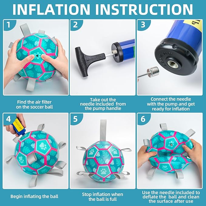 • 🐶 ⚽Dog Soccer Ball Improve Human Well-Being: Watching your dog chasing, running, playing and other activities can not only bring people happiness, but also reduce stress and tension, and enhance human well-being.Outdoor Dog Toys Improve your dog's physical fitness, thereby improving their physical fitness and endurance.
