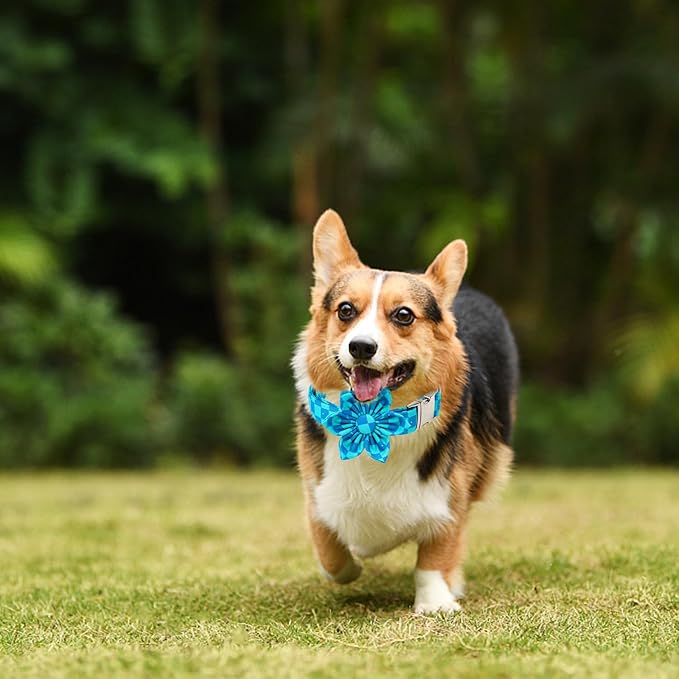 Maca Bates Checkered Plaid Mint Green Blue Dog Grid Collar with Flowers for Dogs Adjustable Breakaway Cute Plaid Collars Accessories Gift for Small Medium Large XL Puppy with Golden Metal Buckle
