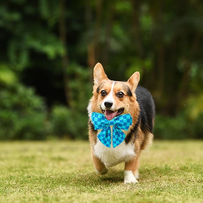 Maca Bates Plaid Blue Dog Collar with Checkered Bow Bowtie for Grid Dogs Bows Tie Adjustable Breakaway Collars Birthday Gift Colar for Small Medium Large XL Girl Boy Male Female Puppy Pets