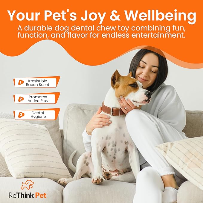 • Savor Stimulating: This Boomerang dog dental toy is infused with a bacon scent to keep your pet's mind engaged for hours. Our dog chew bones stimulate your dog’s olfactory senses, keeping them entertained and preventing boredom.
