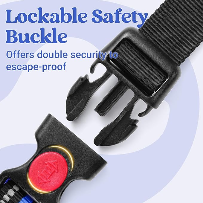 • Perfect Protection: The dog harness features sturdy and wear-resistant nylon Oxford fabric with reinforced stitching for high tensile strength. A lockable buckle at the neckline provides secure fastening, preventing accidental release under excessive force. Wide-area reflective stitching enhances visibility, making it suitable for nighttime use