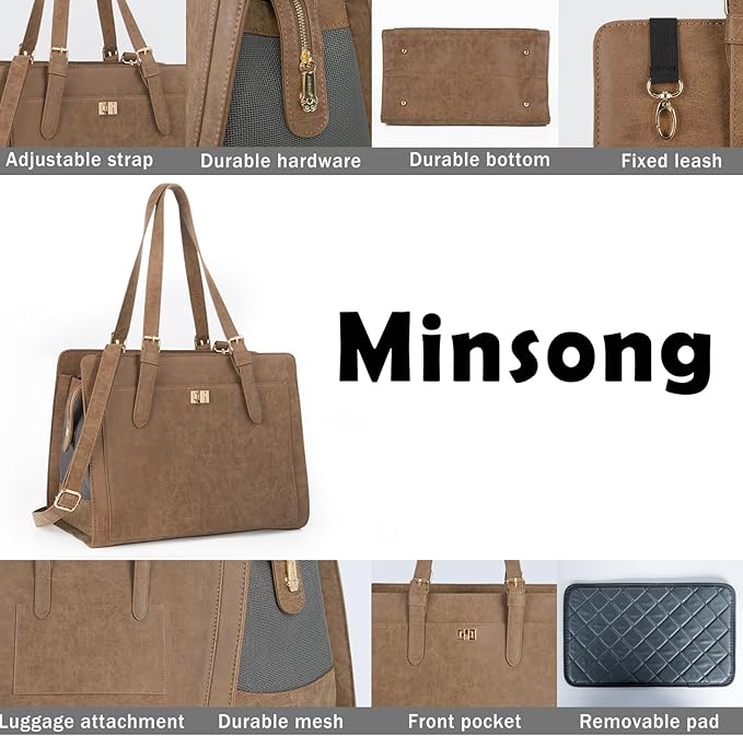 • 🐕[ Elegant Designer Pet Carrier ] Minsong pet carrier purse would be a luxury carrier designed for small pets, such as dogs ,puppy and cats, and would incorporate the signature elements of fashion style. The pet carrier purse have leather handles and a detachable shoulder strap for easy carrying. It also include additional features such as pockets for storing pet accessories or a removable pad for easy cleaning.