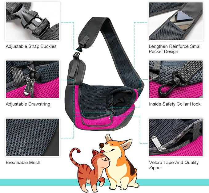 • SAFE AND CONVENIENT --- A safety buckle on the inside of the pet sling carrier (it can be connected to a collar) to prevent pets from jumping out. Magic sticker prevents the zipper from slipping and effectively increases safety. The firm buckle design on the shoulder strap is convenient to use and prevents the bag from being disconnected during use.