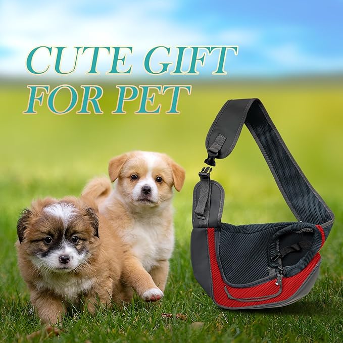 Pet Dog Sling Carrier, Breathable Mesh Adjustable Puppy Sling Carrier Hand Free for Small Dog Cat Rabbit, M, Red