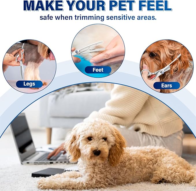 • Sharp Convex Edge: The razor-sharp blades of this grooming scissors provide precise cutting and grooming for your pet, making it easy to achieve professional results at home. The slightly curved blade allows you to more easily cut your dog's hair into a round and cute shape.