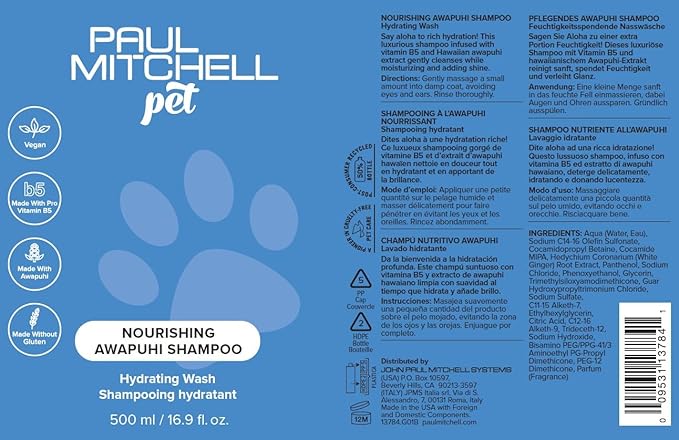 • Product Benefits : Vegan. Made with B5. Made with awapuhi. Made without gluten. A pioneer in cruelty-free pet care.