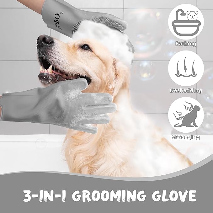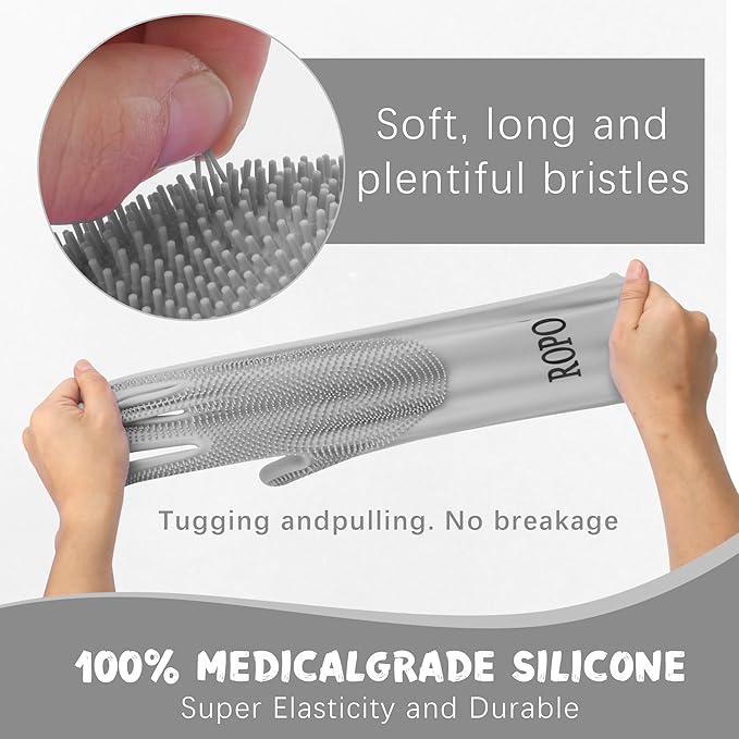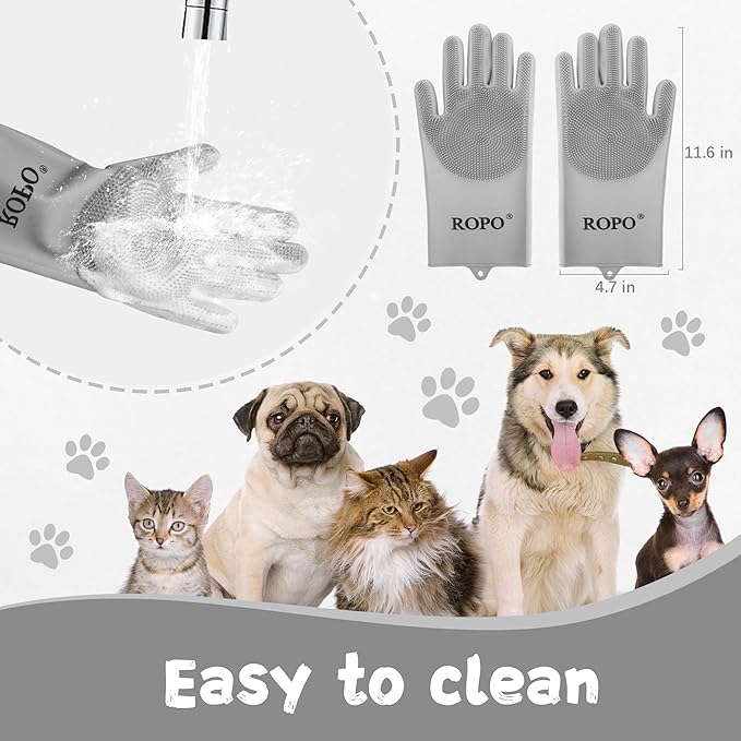 ROPO silicone gloves for pet grooming, multi-functional gloves for pet hair shedding, bathing, and massage (Grey)