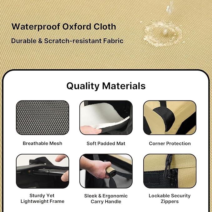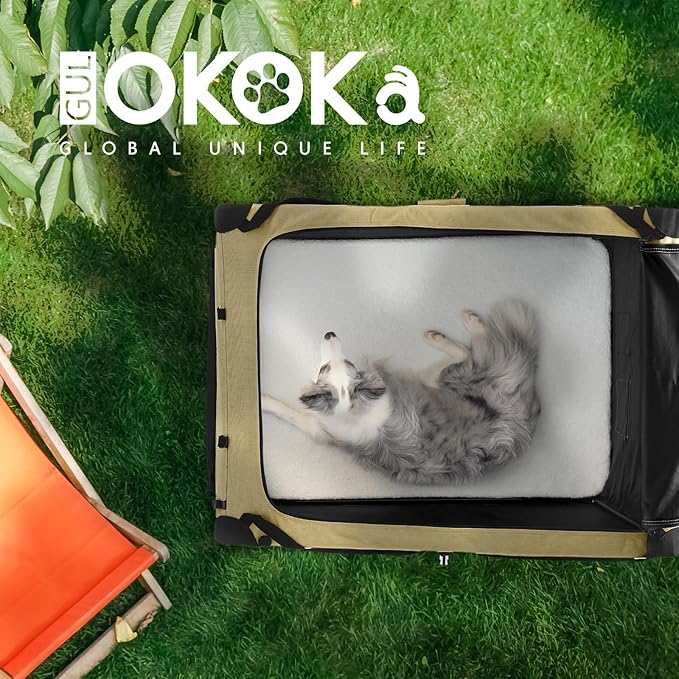 • Simple & Clean: This dog crate is designed to make your life easier. It assembles in seconds, folds flat for compact storage, and features water-resistant fabric for easy cleaning. The removable and machine-washable mat keeps things fresh and hygienic.