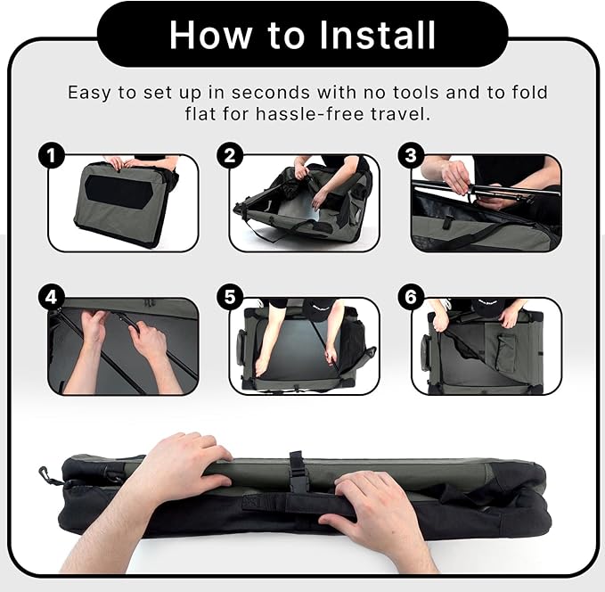 • Travel Ready: This lightweight and compact dog carrier is perfect for adventures big and small. The foldable design collapses into a flat package for easy storage, and the included carry bag makes it a breeze to transport. Assembly takes just a few minutes, so you can be on your way in no time.