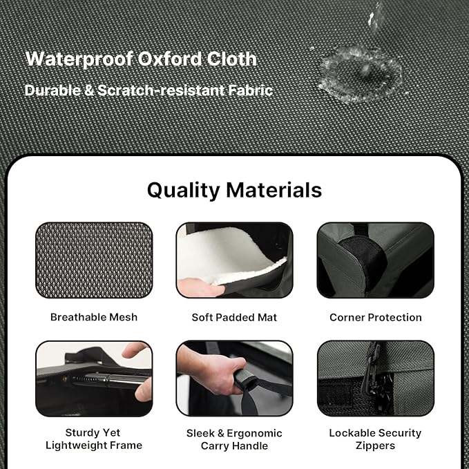 • Simple & Clean: This dog crate is designed to make your life easier. It assembles in seconds, folds flat for compact storage, and features water-resistant fabric for easy cleaning. The removable and machine-washable mat keeps things fresh and hygienic.