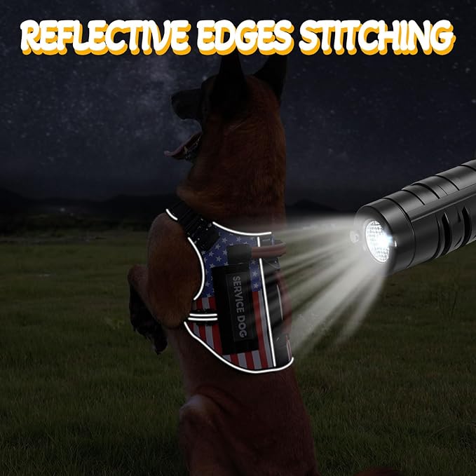 Service Dog Vest - HEYCAHVA Tactical Dog Harness Full Metal Buckles Dog Vest for Large Medium Dog Reflective No Pull Dog Harnesses with Leather Handle, Hook & Loop for Hiking Training (Flag, L)