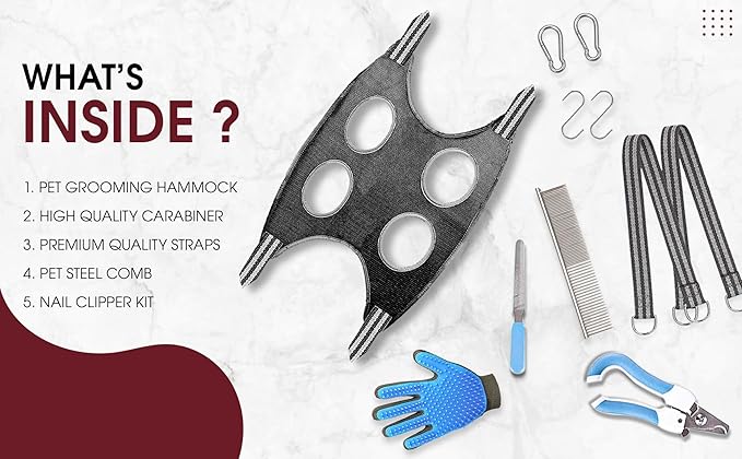 • [ VERSATILE GROOMING HARNESS FOR MEDIUM DOG NEEDS ] Our grooming harness for medium dog is designed to handle various grooming tasks. Use it for secure nail trimming and clipping, making it a versatile dog grooming hammock medium for any grooming session.