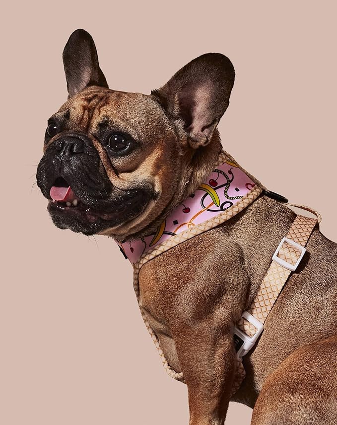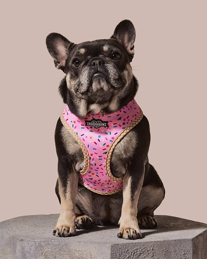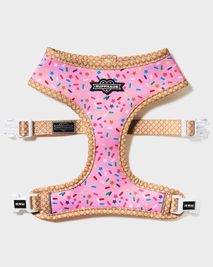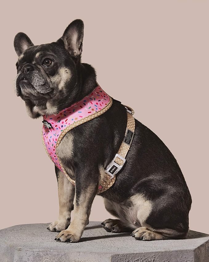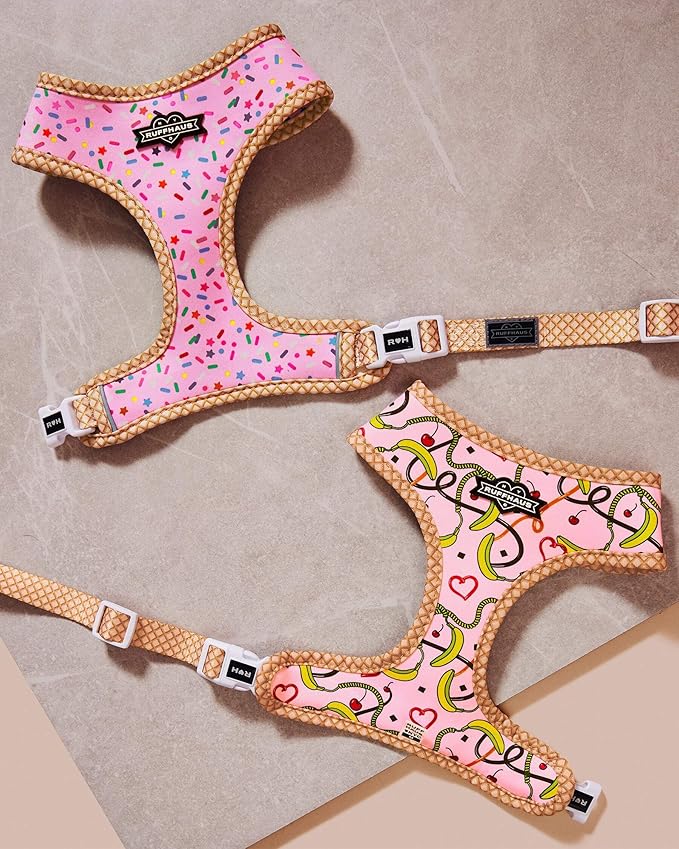 Ruffhaus NYC Pink Sprinkles Reversible Dog Harness, Ice Cream Waffle Cone, Banana Split Printed No Pull Harness Puppy Gift Girl Dog Birthday & Gotcha Day Medium