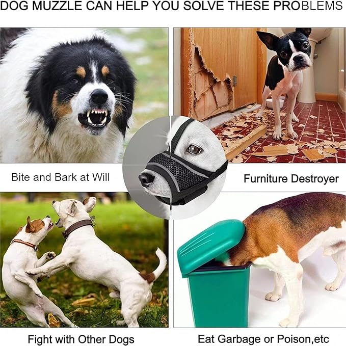 • Adjustability and Security: The Muzzle for Dogs feature adjustable straps for a secure and snug fit. The muzzles are designed to prevent easy removal by dogs.This design not only prevents accidental removal but also provides you with enhanced control during walks or training sessions. The addition of reflective strips enhances visibility during nighttime walks, thereby improving safety.