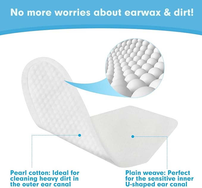 • 【Soft and Effective】:Measuring 5.7" L x 1.8" W, the extended size and pull-tab tail design make it easy to wear and prevent slipping. Made from 100% pure cotton, the soft material is gentle on your pet’s sensitive skin. The dual-sided design caters to different needs: one side features a plain weave for gentle wiping, ideal for sensitive inner ear areas; while the other has a textured pearl pattern for deep cleaning and removing stubborn dirt.