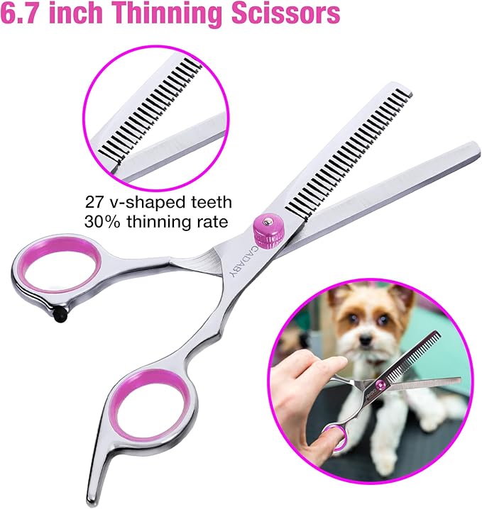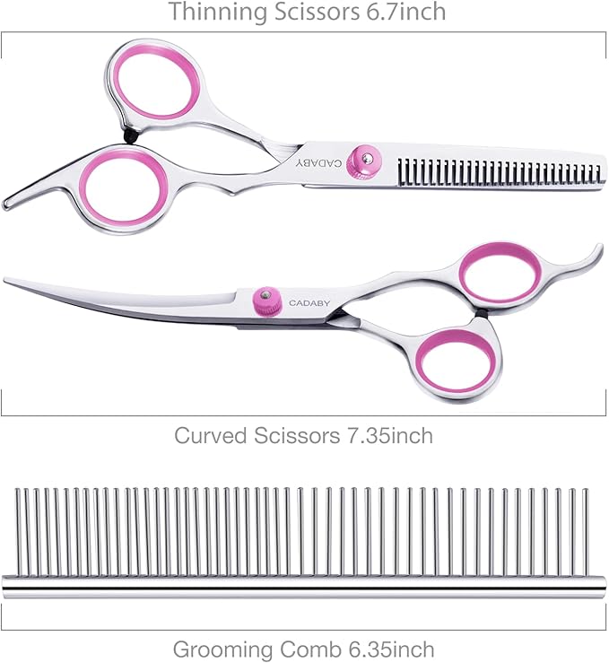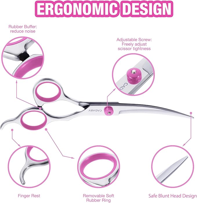 • Ergonomic Design: CADABY dog scissors for grooming are comfortable to hold by right hand. A rubber bumper at the handle which can reduce noise during trimming and keep your pet won't frightened. Our dog scissors equipped a adjust screw,you can adjust the tightness of the scissors according to your personal feeling. Very convenient