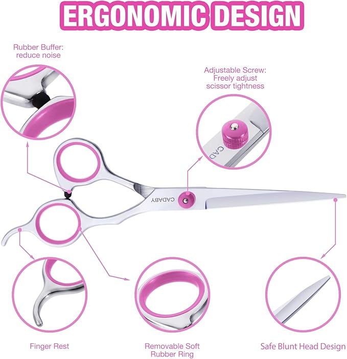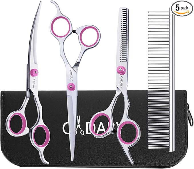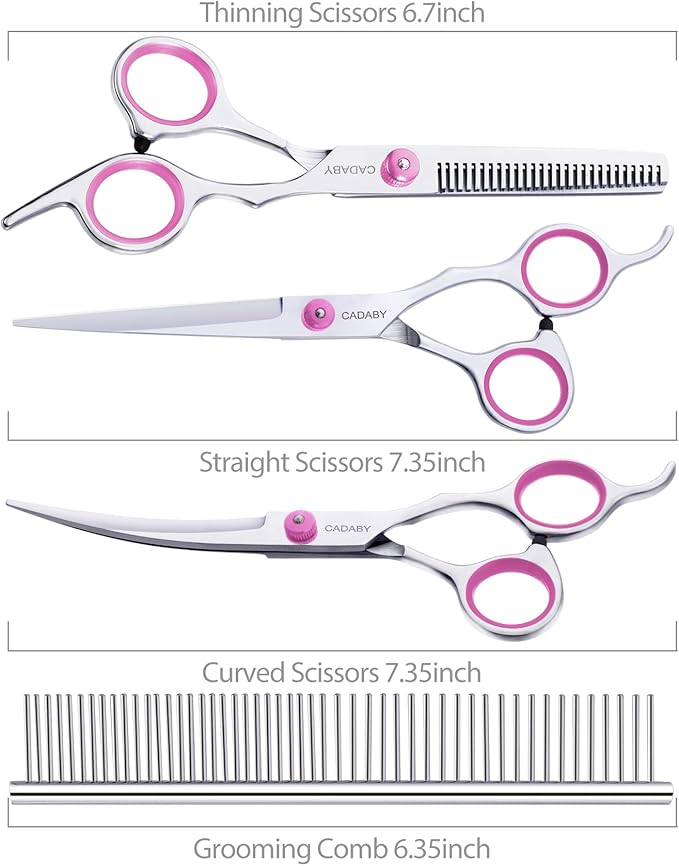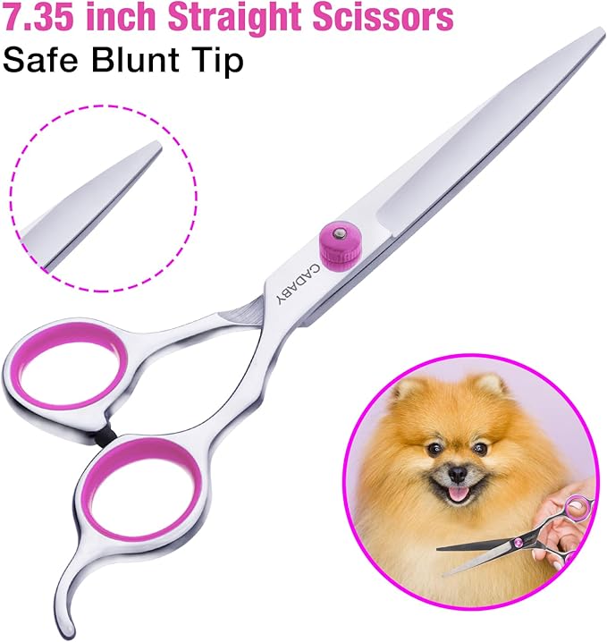 • Ergonomic Design: CADABY dog scissors for grooming are comfortable to hold by right hand. A rubber bumper at the handle which can reduce noise during trimming and keep your pet won't frightened. Our dog scissors equipped a adjust screw,you can adjust the tightness of the scissors according to your personal feeling. Very convenient