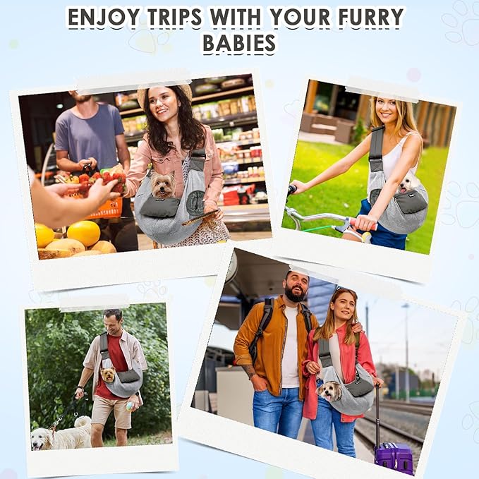 SlowTon Dog Carrier Sling - Puppy Carrier with Window and Storage Pocket Fits up to 12lbs, Dog Sling with Thick Adjustable Shoulder Strap and Safety Leash, Pet Carrier Bag for Small Dogs Cats(Grey S)
