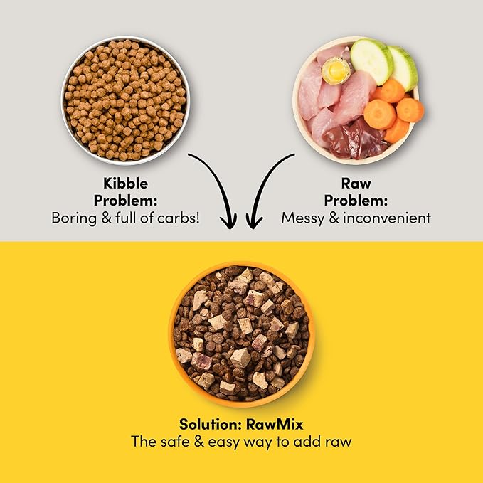 • IT’S RAW, MADE EASY! | The easy and safe way to add raw to your dog’s diet. RawMix33 is a tasty blend of 33% freeze dried raw chicken heart, chicken liver, and chicken gizzards combined with 67% high protein meat bites