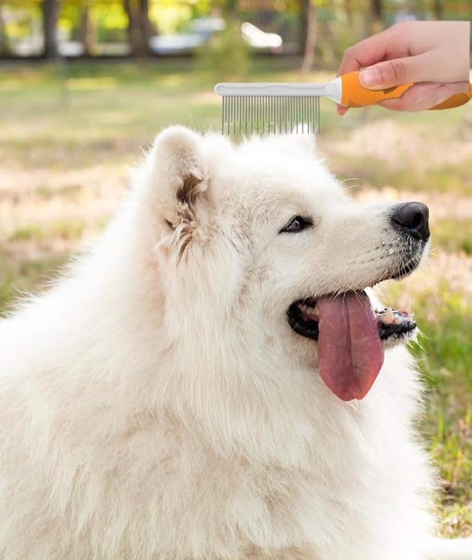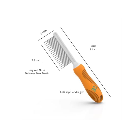 • Dual-Tooth Design: Stainless steel comb with short and long teeth for dematting and detangling long, curly or silky pet hair.
