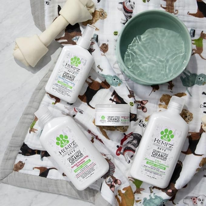 • Keep your dog looking and smelling great with Hempz Petz Herbal Deodorizing Shampoo. This formula nourishes, hydrates, and restores your pet’s coat and skin with 100% pure hemp seed oil.