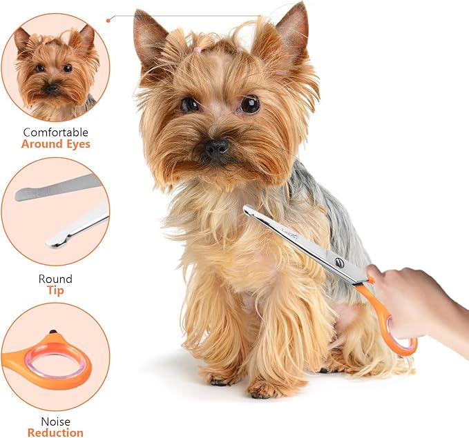 • Perfect for At-Home Grooming: Ideal for DIY pet grooming, these dog hair cutting scissors are perfect for trimming fur around sensitive areas like the face, paws, and tail, allowing you to maintain your dog hair cut between professional grooming visits.