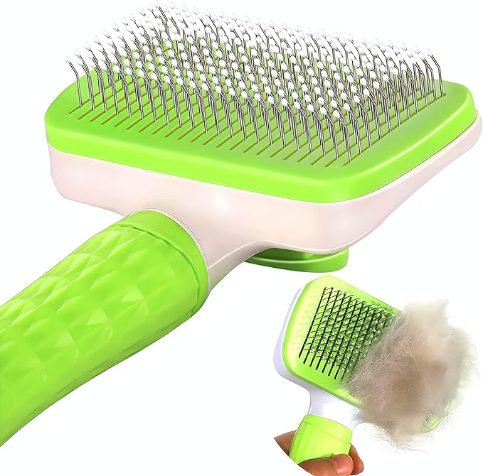 • ⭐ EASY TO USE: All you need to do is press the button to retract the bristles, then slide the hair off. It will only take a few seconds to fully remove the hair from the brush so you may use it again.