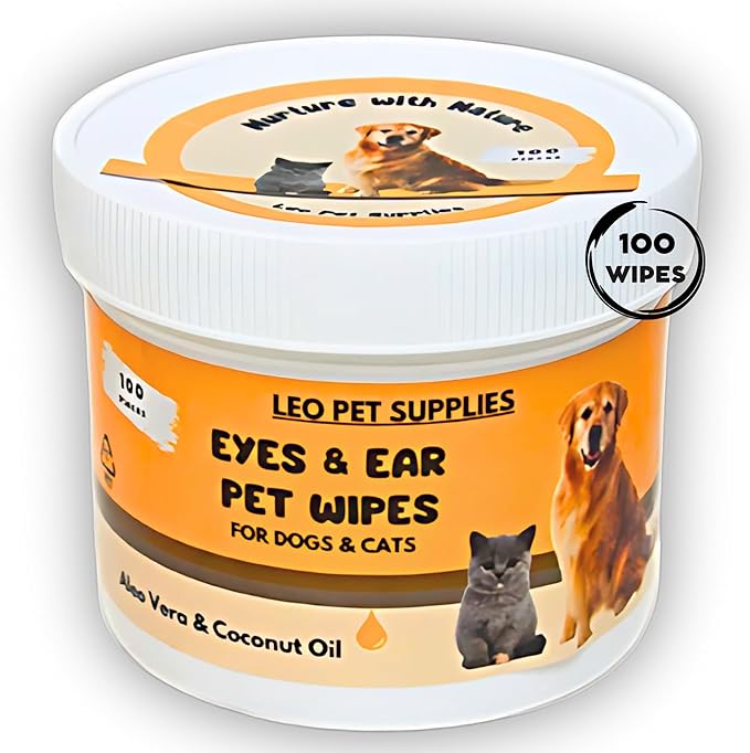 Eye & Ear Wipes for Pets - (100 Count) - Cleanser for Dogs and Cats, Non-Irritating Ingredients; Aloe Essence and Coconut Oil, Specially formulated, Everyday use, Unscented