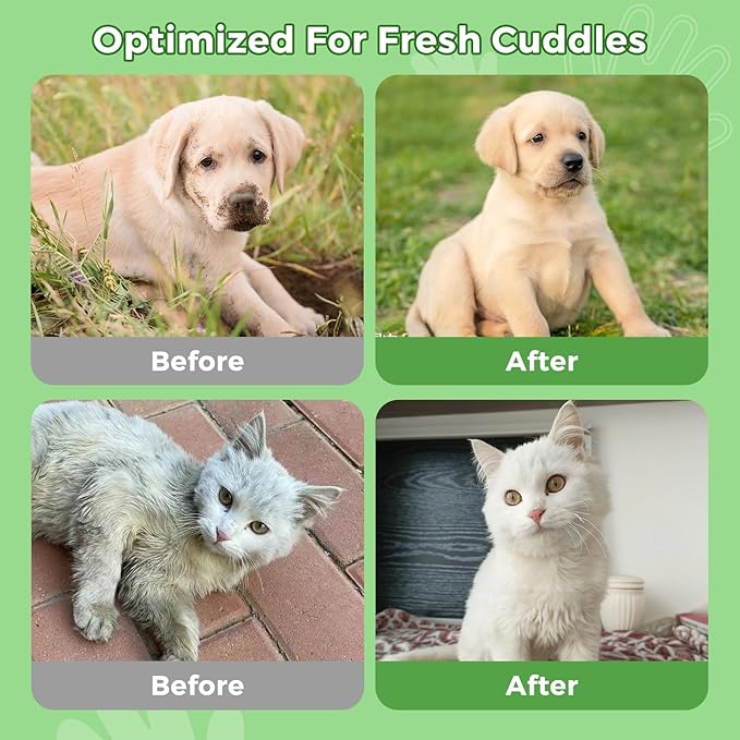 • 【Rinse-Free Dog Bath Wipes】Our no-rinse pet bathing wipes will revolutionize your pet's grooming routine, making it easier than ever before, perfect for daily use, outdoor activity, traveling, and pets in some special circumstances.
