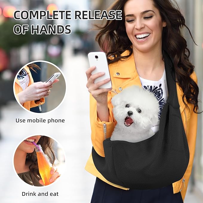 Dog Carrier Sling - Ultra Breathable Reversible Puppy Carrier Purse with Storage Pocket, Travel Safety Harness, Hand-Free Dog Sling Carrier for Carry Small Dogs and Cats, Dog and Cat Harness(Black)