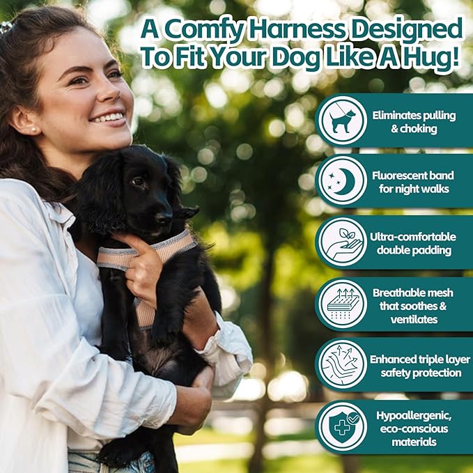 • Lightweight and Comfortable:XIPDOGER dog harness use corduroy fabric on the front is fashion and wear-resistant, EXTREMLY SOFT.While the reverse side is breathable air mesh fabric and lightweight.That will keep your dog cool and comfortable, it's ideal for daily walking, jogging, training etc. Four seasons wearing.