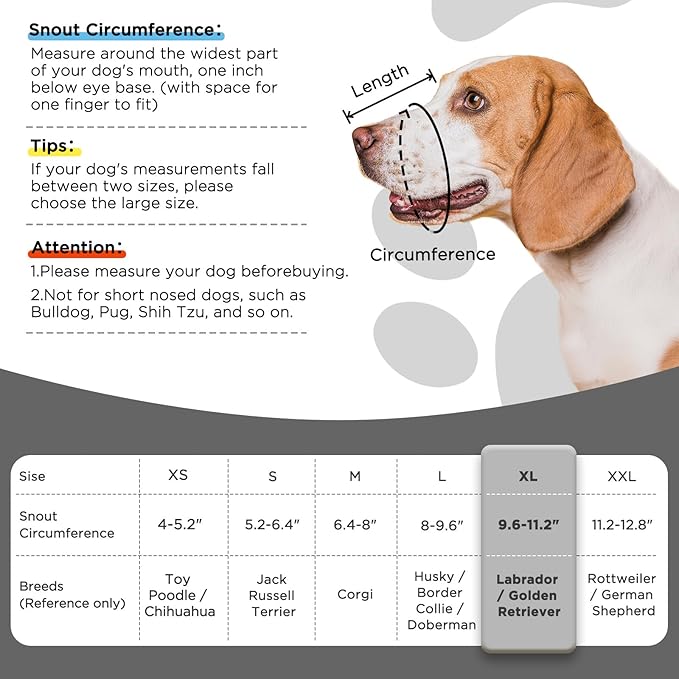 • Safety &Adjustable Dog Muzzle: Adjustable at snout and overhead strap. Keep the dog mask muzzle stays in place. Dont worry about your dog wriggling out of their dog mouth cover!.The reflective edges is safety for walking in dark.Please don't let your dog wear the muzzle for a long time without your supervision.
