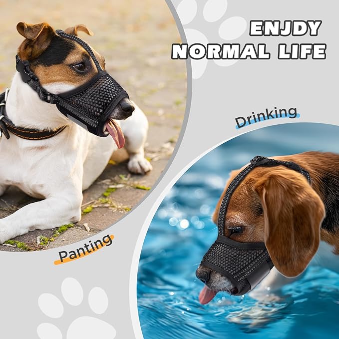 • Soft and Ultra-Breathable Dog Muzzle:Upgrade mesh dog muzzle made of soft, lightweight and odorless materials, is extremely comfortable for dogs to wear. We add a nylon strap adround dog's head to keep dog muzzle fall down.And also provide dogs with maximum ventilation and allows them to pant freely.