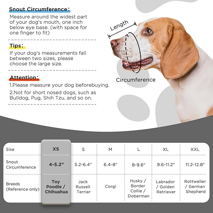 • Safety &Adjustable Dog Muzzle: Adjustable at snout and overhead strap. Keep the dog mask muzzle stays in place. Dont worry about your dog wriggling out of their dog mouth cover!.The reflective edges is safety for walking in dark.Please don't let your dog wear the muzzle for a long time without your supervision.