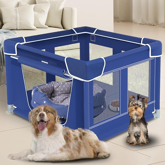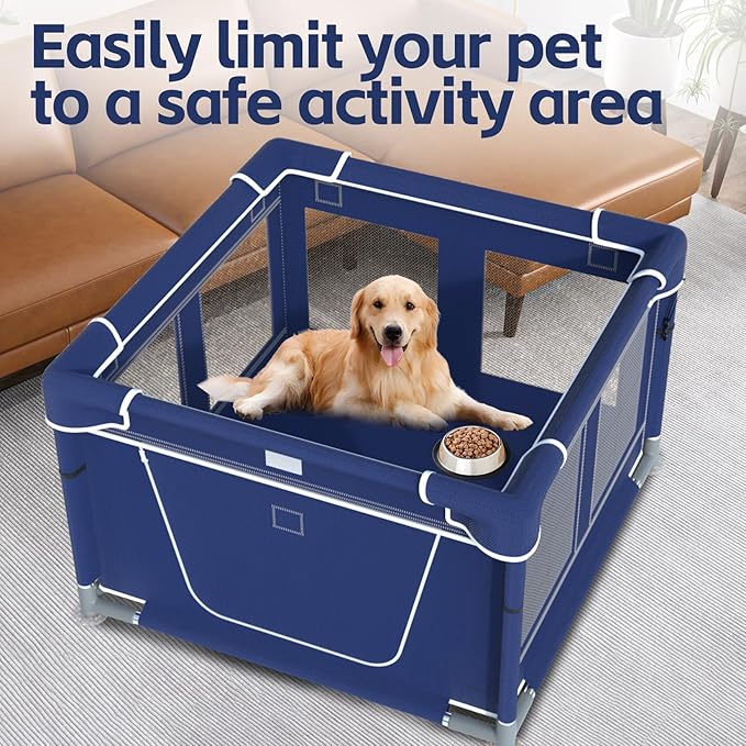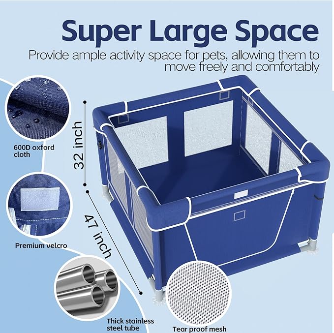 • SAFE SPACE: The size of the puppy playpen is 47*47*32 inch, which is suitable for most Medium pets, and can accommodate multiple small pets playing at the same time, providing a safe playing environment for pets, very suitable for nursing pets and their puppies.