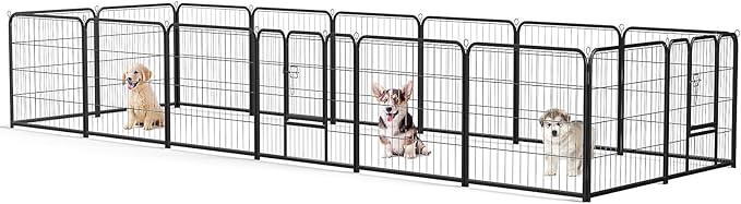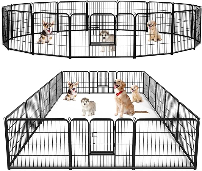 • 【Tailored Options for Every Pet】 Available in 8-panel and 16-panel, with 3 kind of heights: 24”, 32”, and 40”. Our diverse selection ensures a perfect fit for dogs of all sizes and accommodates various pets, such as kitten, cats, rabbits and so on, providing a reliable and comfortable space for all. And it’s easy to assemble this foldable metal dog pen according to the desired area of use.