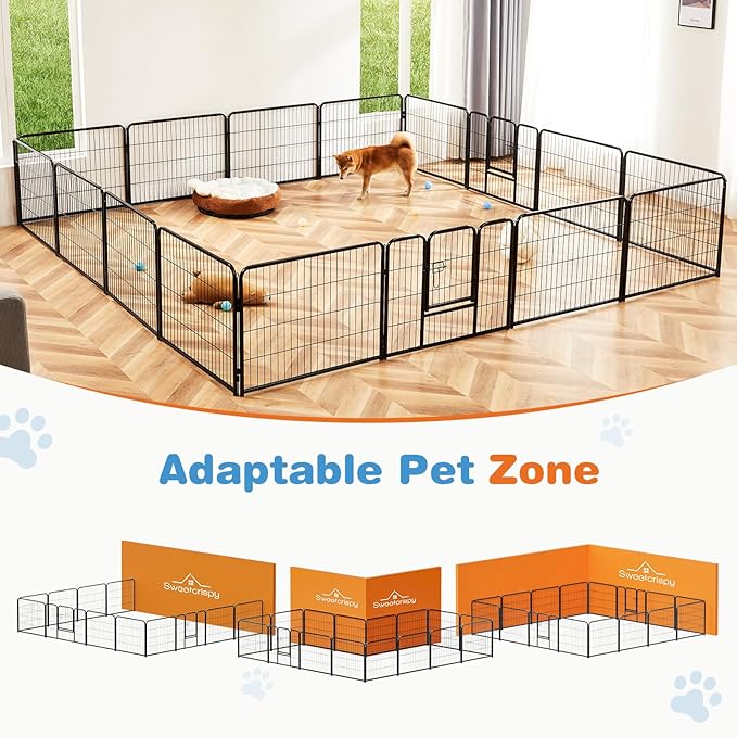 Sweetcrispy Dog Playpen Indoor - Pet Fence Exercise Pen for Yard Gate 16 Panels Foldable Puppy Playpens with Doors Metal Dog Pen for Camping, RV, Outdoor, Small/Medium Pets, 24” Height