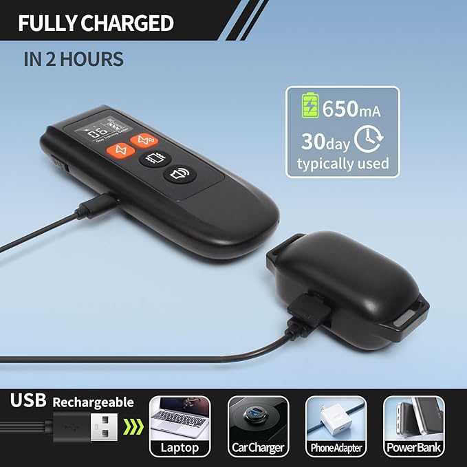 • 【Long-lasting Battery Life】Equipped with a USB rechargeable battery, our anti bark collars for dogs can last up to 30 days on a single charge. This bark collar with remote ensures consistent training without the hassle of frequent recharging, making it both convenient and reliable for everyday use.