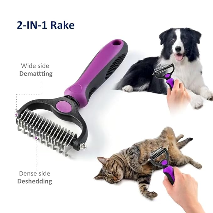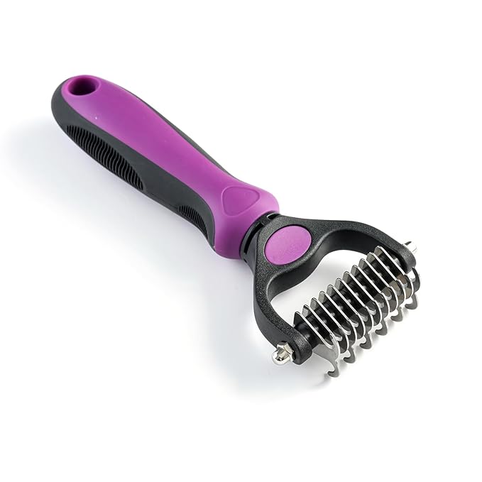 WePet Grooming Rake for Dogs & Cats, Double-Sided Deshedding Brush, Extra-Wide Dematting Tool, Slicker Comb for Undercoat & Loose Hair Removal, Reduces Shedding by 95%, Purple, Small