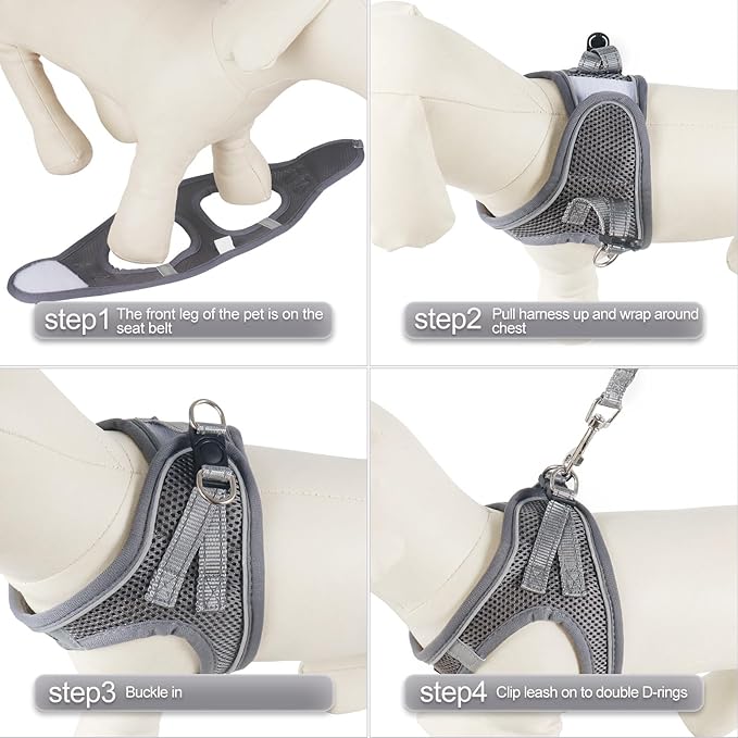 YIMEIS Dog Harness and Leash Set, No Pull Soft Mesh Pet Harness, Reflective Adjustable Puppy Vest for Small Medium Large Dogs, Cats (Gray, Small (Pack of 1)