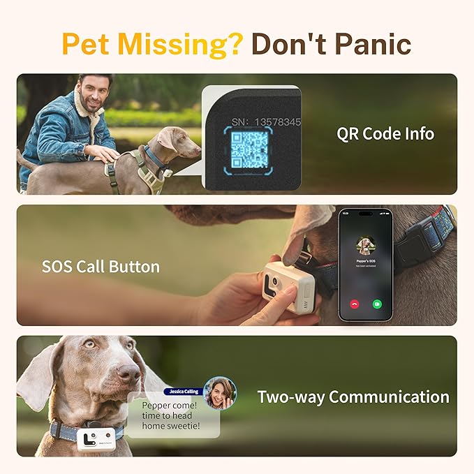 • Stay Connected - Pet info QR code, built-in SOS button, and two-way communication capabilities allow your pet's rescuer to contact you in a timely manner.