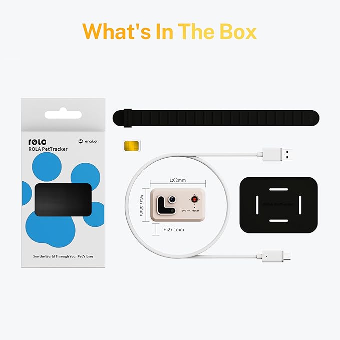 • Included Components : Pet Tracker(with Back Clip), Nano SIM Card, USB-C Cable, Fur Pad, Strap