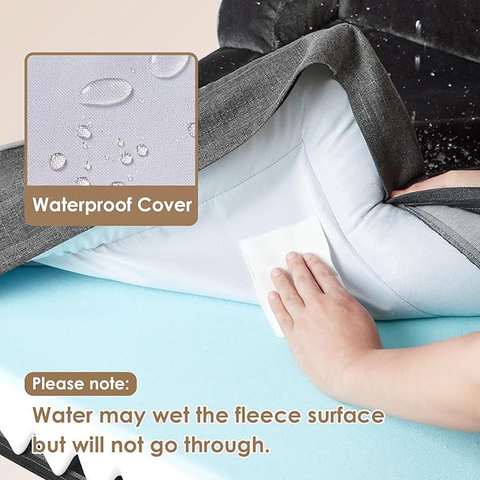 • WATERPROOF FILM and NON-SLIP BOTTOM: There is a waterproof film between the fleece surface and the bottom fabric that makes the dog bed waterproof. However, the faux linen on the side is not waterproof. A non-slip point on the bottom is not easy to slide, and keeps your dog bed steady.