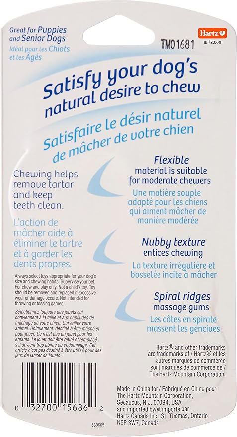• CONTAINS: Contains one Hartz Chew ‘n Clean Twisty Bone dog toy. Other sizes available are extra small (for dogs under 10 lbs.) and small/medium (for dogs 10 to 50 lbs.).