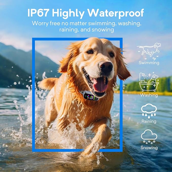 • User Friendly & IP67 Waterproof: Our dog bark collar, thoughtfully designed for effortless use, operates without the need for manual control through a remote. Simply set it up effortlessly, and let the anti bark collar work its magic automatically. With an IP67 waterproof rating, it seamlessly transitions between indoor and outdoor activities, excelling in hikes, swims, and rainy weather