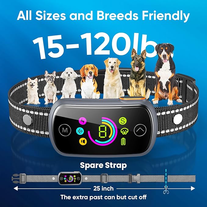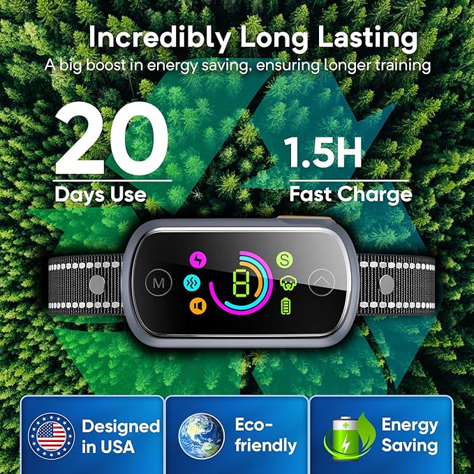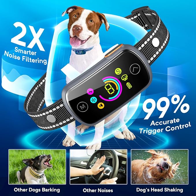 • 2024 Upgraded Barking Collar, Unleashing Superior Quality in Every Detail: Experience an elevated training with extended battery life (20 days), a durable metal clasp replacing plastic for durability, and a screen processed with IML tech for added strength to withstand every bite. The large color screen is bright and easy to read day and night