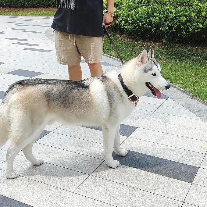 • 【High Quality Leather】The dog leash well made of high-quality Italian imported cowhide is strong and soft, flexible, and durable, which will not harm your dog's skin, and is comfortable to wear for a long time,Can withstand a pull force of up to 400 pounds.