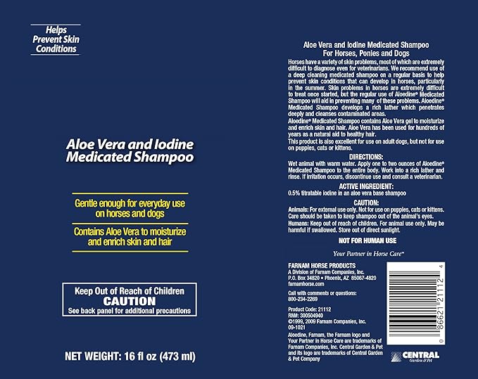 Farnam Medicated Shampoo with Aloe Vera and Iodine | Moisturizing and Gentle | for Horses, Ponies and Dogs | 16 oz (Pack of 2)